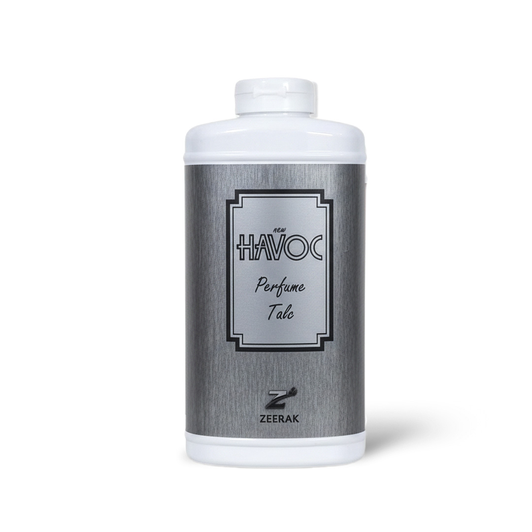 Embrace clean, contemporary freshness with Zeerak New Havoc Silver Perfume Talc. This high-quality body powder is infused with a crisp, invigorating fragrance that embodies modern elegance and coolness. The talc is expertly milled to be ultra-fine, offering powerful performance by instantly absorbing sweat and excess moisture for superior all-day comfort and dryness. It actively minimizes skin friction, which helps prevent chafing and irritation, leaving your skin soft, smooth, and revitalized.